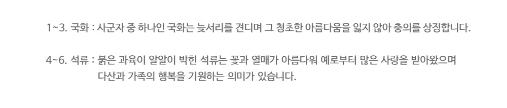 4–6 Pomegranates: With their vibrant red fruit and blossoms, pomegranates symbolize fertility and family happiness, treasured in Korean culture for generations.
