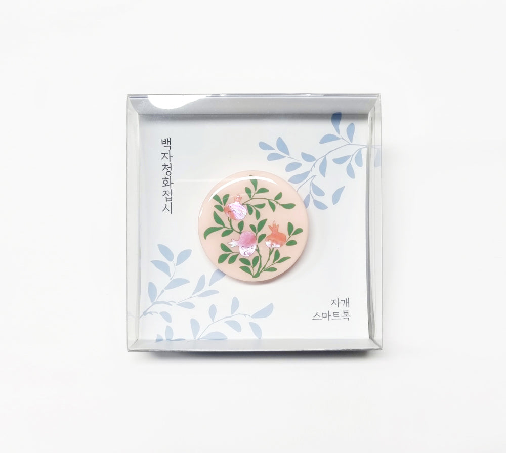 Celebrate the elegance of Korean heritage with this handcrafted brooch, inspired by the iconic Cheonghwa Baekja plates that flourished during the Joseon Dynasty. Renowned in the 19th century for their intricate depictions of pomegranates, chrysanthemums, and peonies, these porcelain masterpieces now find new life in this exquisite accessory.
