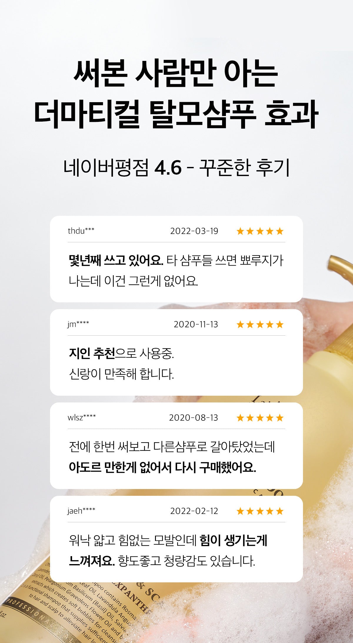 髪が細くなってきて悩んでいたけど、これを使い始めたら元気に戻りました。頭皮のケアもできて、一石二鳥!
