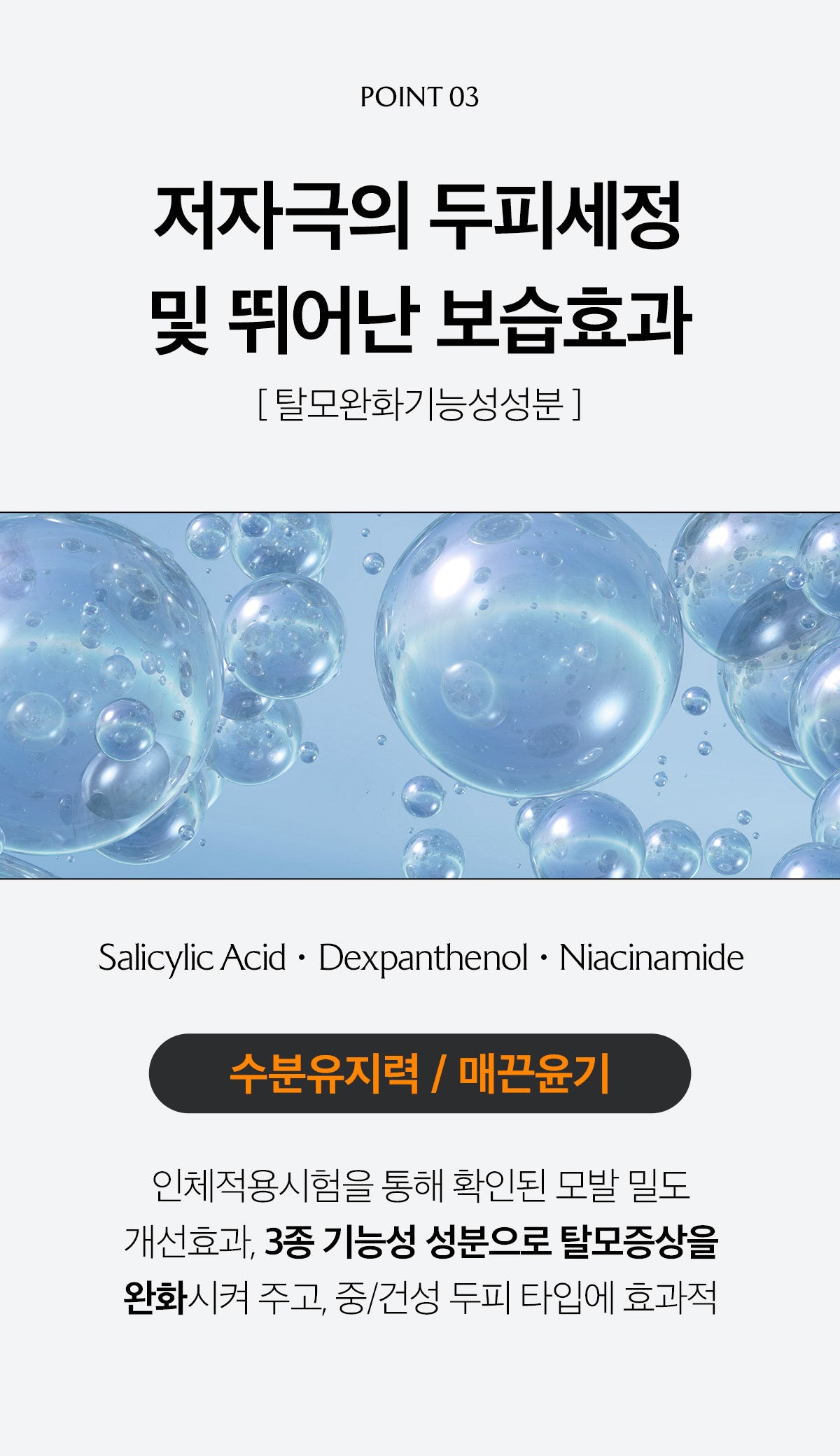 - Salicylic Acid: Lowers scalp heat, removes dead skin cells and sebum, maintaining a clean scalp.