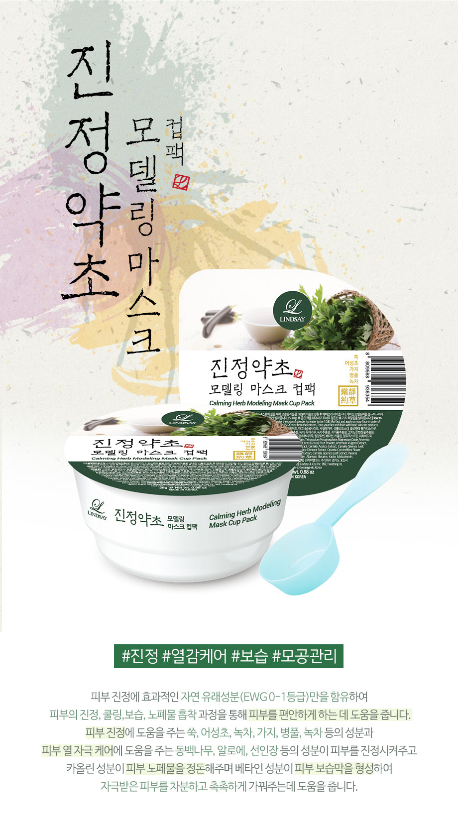 The LINDSAY Calming Herb Modeling Mask Cup Pack is a blend of natural ingredients, all rated EWG 0-1 for safety and effectiveness. It’s specially formulated to soothe and comfort the skin, providing benefits such as cooling, moisturizing, and waste absorption.