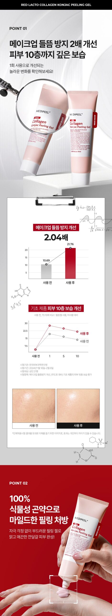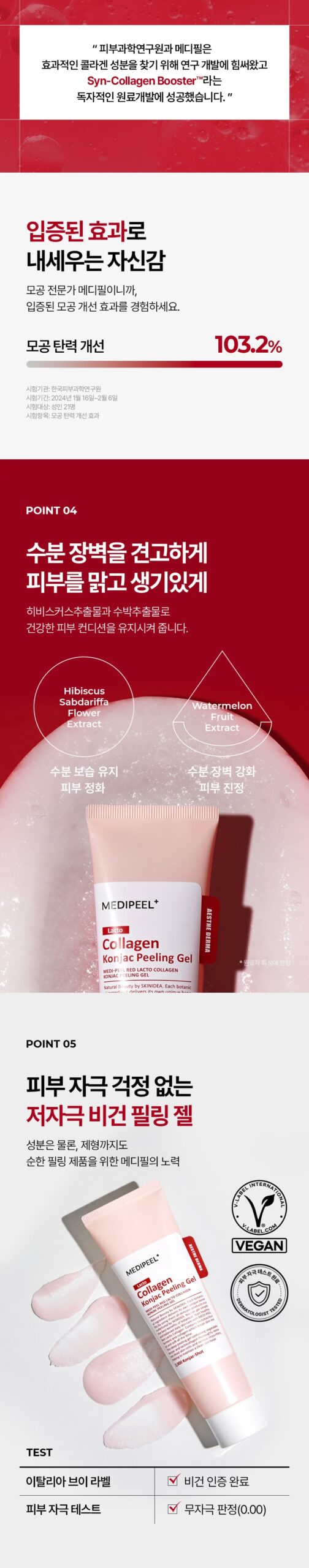 MEDI-PEEL’s Red Lacto Collagen Konjac Peeling Gel is a carefully crafted vegan formula, designed to provide a non-irritating peeling experience. The soft, bouncy gel texture gently removes stubborn dead skin cells, revealing smooth and moisturized skin underneath.