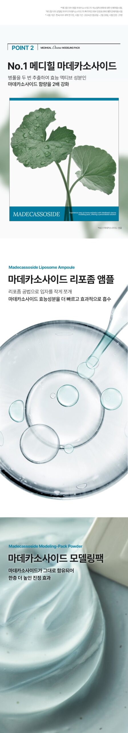 Experience visible trace improvement with just one use. This product offers concentrated care from the roots, featuring quick absorption of a high-efficiency ampoule with Madecassoside liposome micro-particles. The package combines an ampoule and modeling powder to address skin concerns effectively.