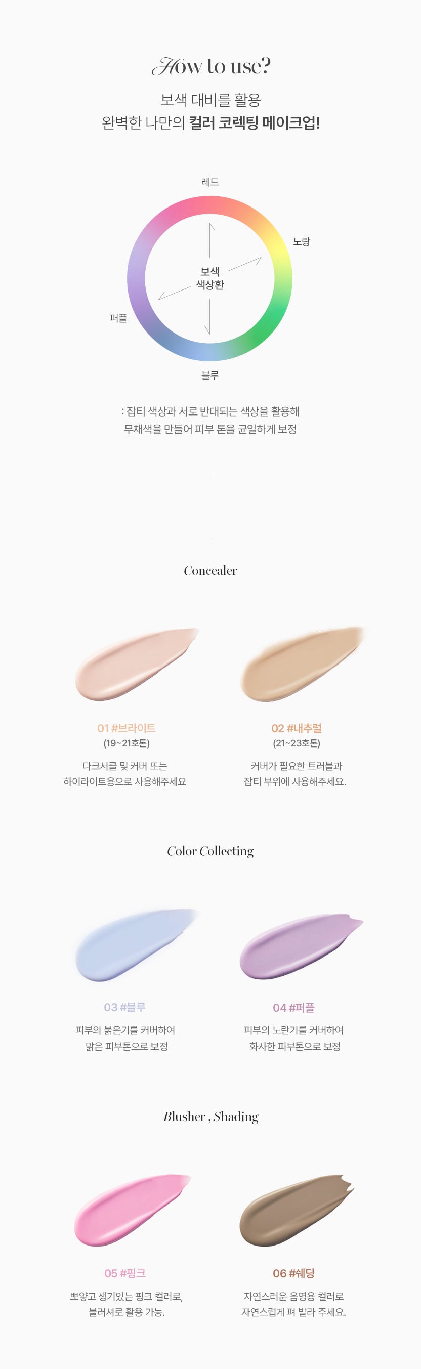 - 04. Purple: Corrects yellow undertones, brightening dull skin.