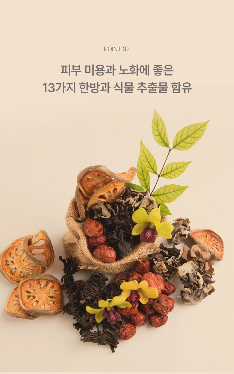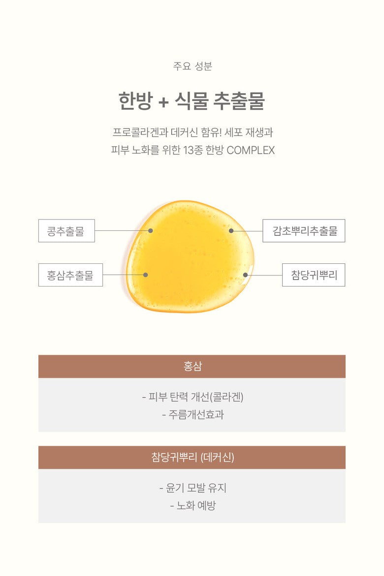 - Oriental Medicine + Plant Extracts: Featuring procollagen and decusin, these extracts support cell regeneration and prevent skin aging.