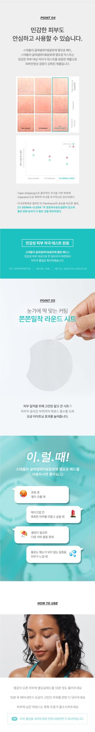 - Pads for Post-Exercise Care: Apply the pad to heated areas for 5 minutes after exercise for cooling and pore-closing benefits.