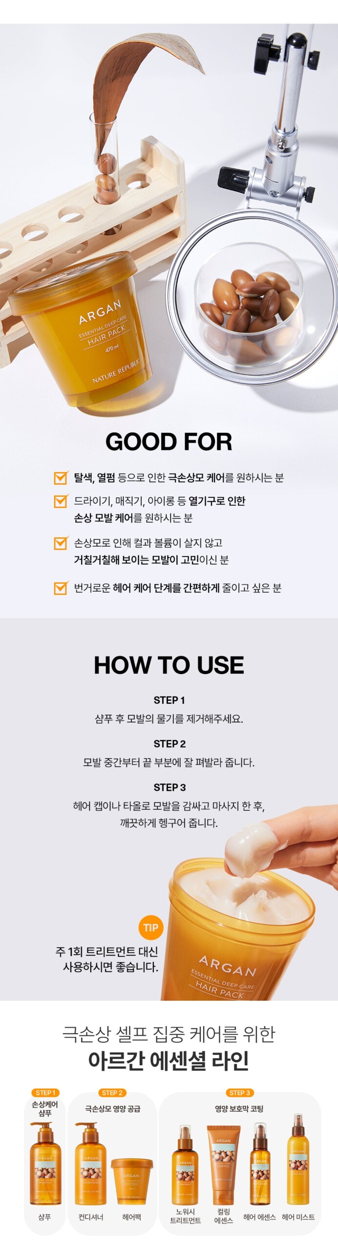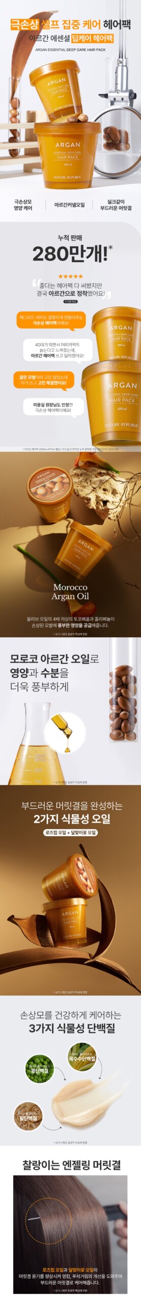 - Silky and shiny hair with argan oil : It contains france argan oil 470mg. It provides rich nutirition such as vitamin A, vitamin E,omega 6 fatty acid, and linolenic acid to our rough skin to be elastic and moist.