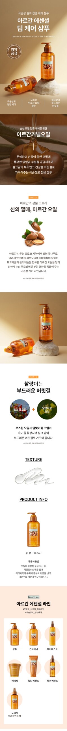 Our Argan Essential Deep Care Shampoo is enriched with Argan oil for silky soft hair. Contains highly-concentrated organic Argan oil for extremely-damaged hair. It helps to repair split ends and brittle hair.