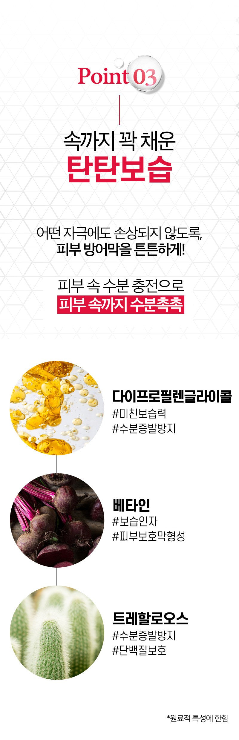 – Dipropylene glycol: Moisturizing power, moisture evaporation prevention