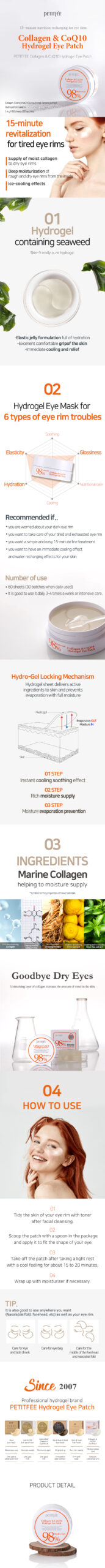 Collagen & CoQ10 Hydrogel Eye Patch are infused with extracts of natural flower plants. This eye patch sup