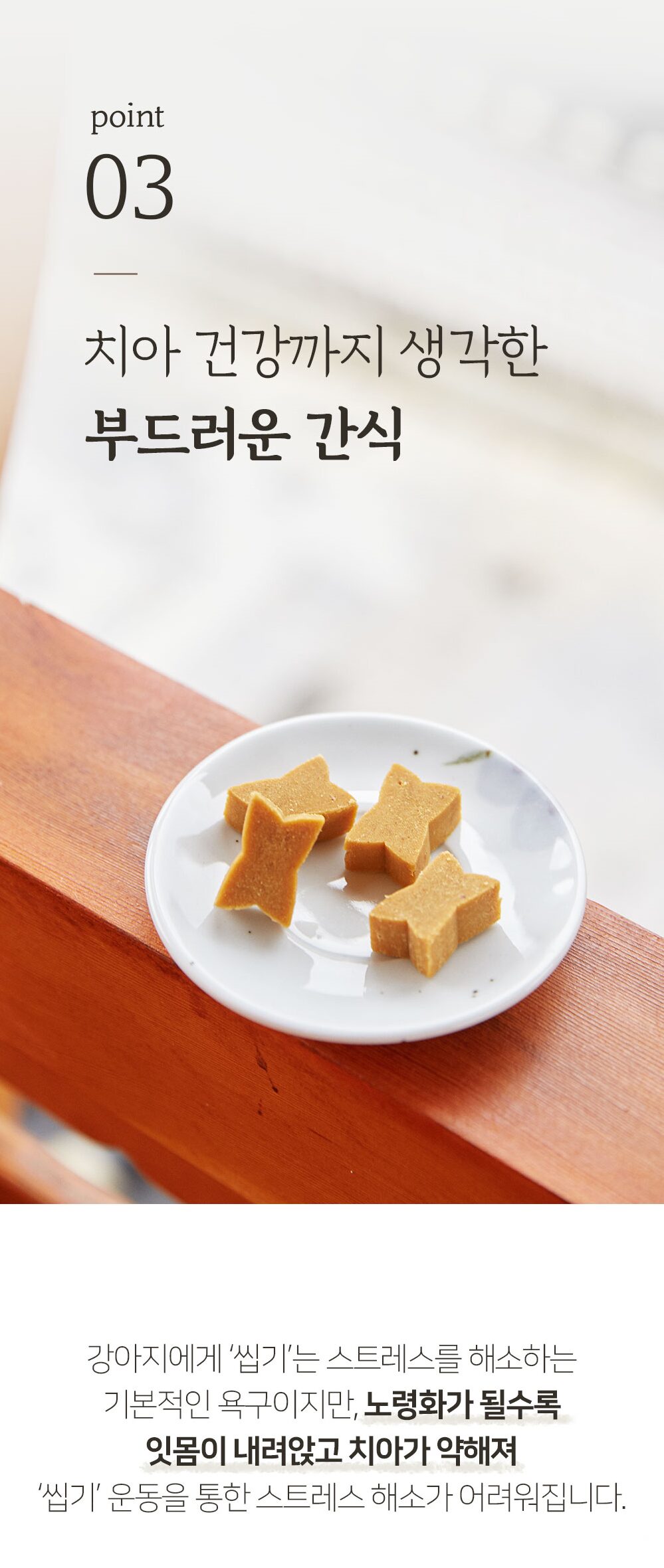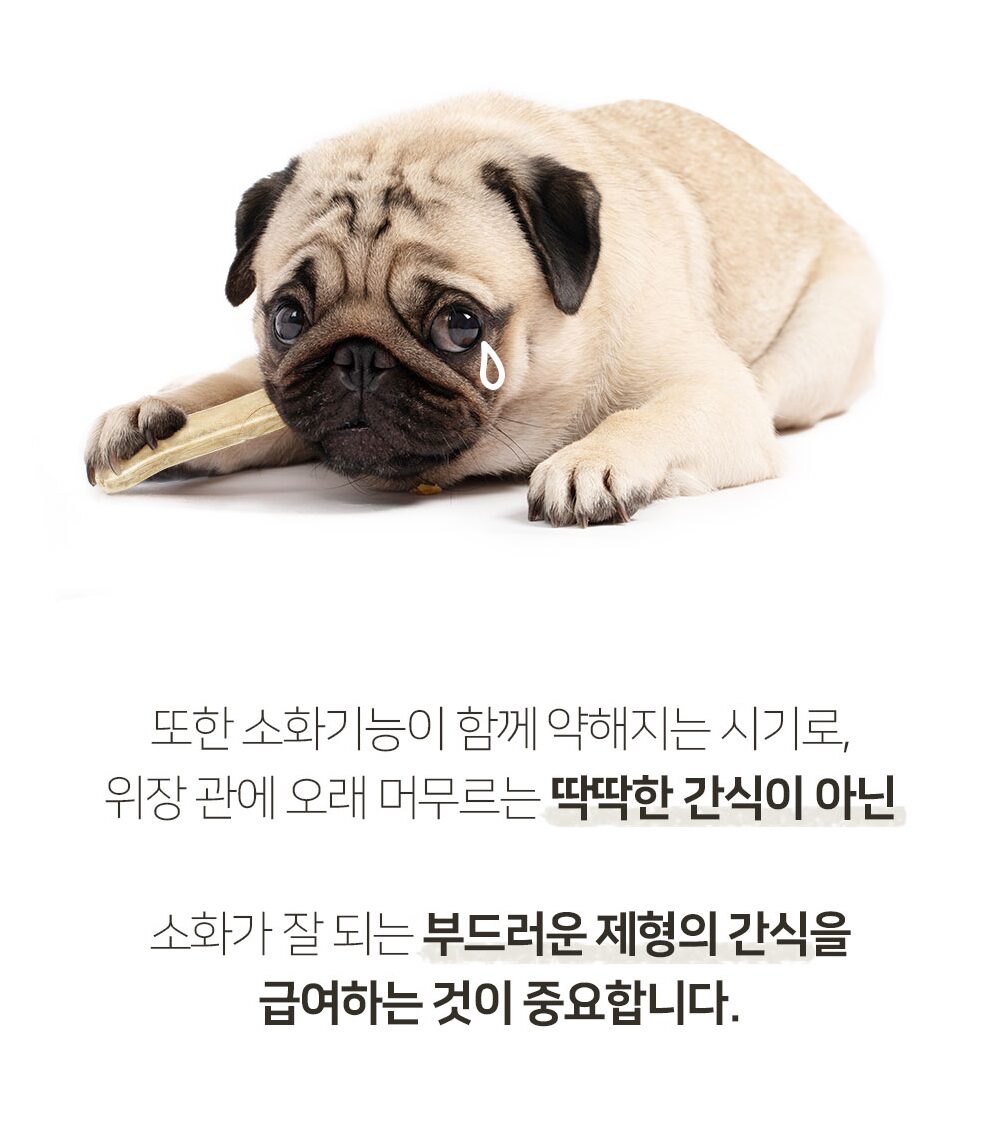 For dogs, ‘chewing’ is a basic need to relieve stress, but as they age, their gums recede and their teeth become weak, making it difficult to relieve stress through ‘chewing’ exercise.