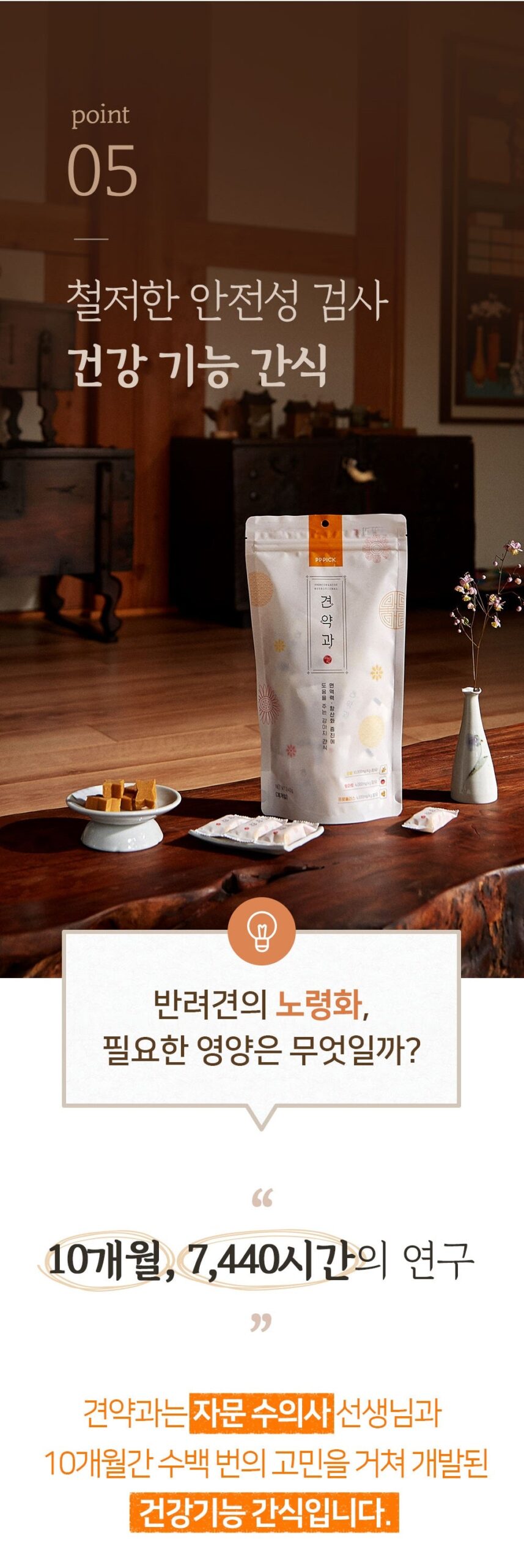 Gyeonyakwa is a health functional snack developed after hundreds of considerations over 10 months with an advisory veterinarian.