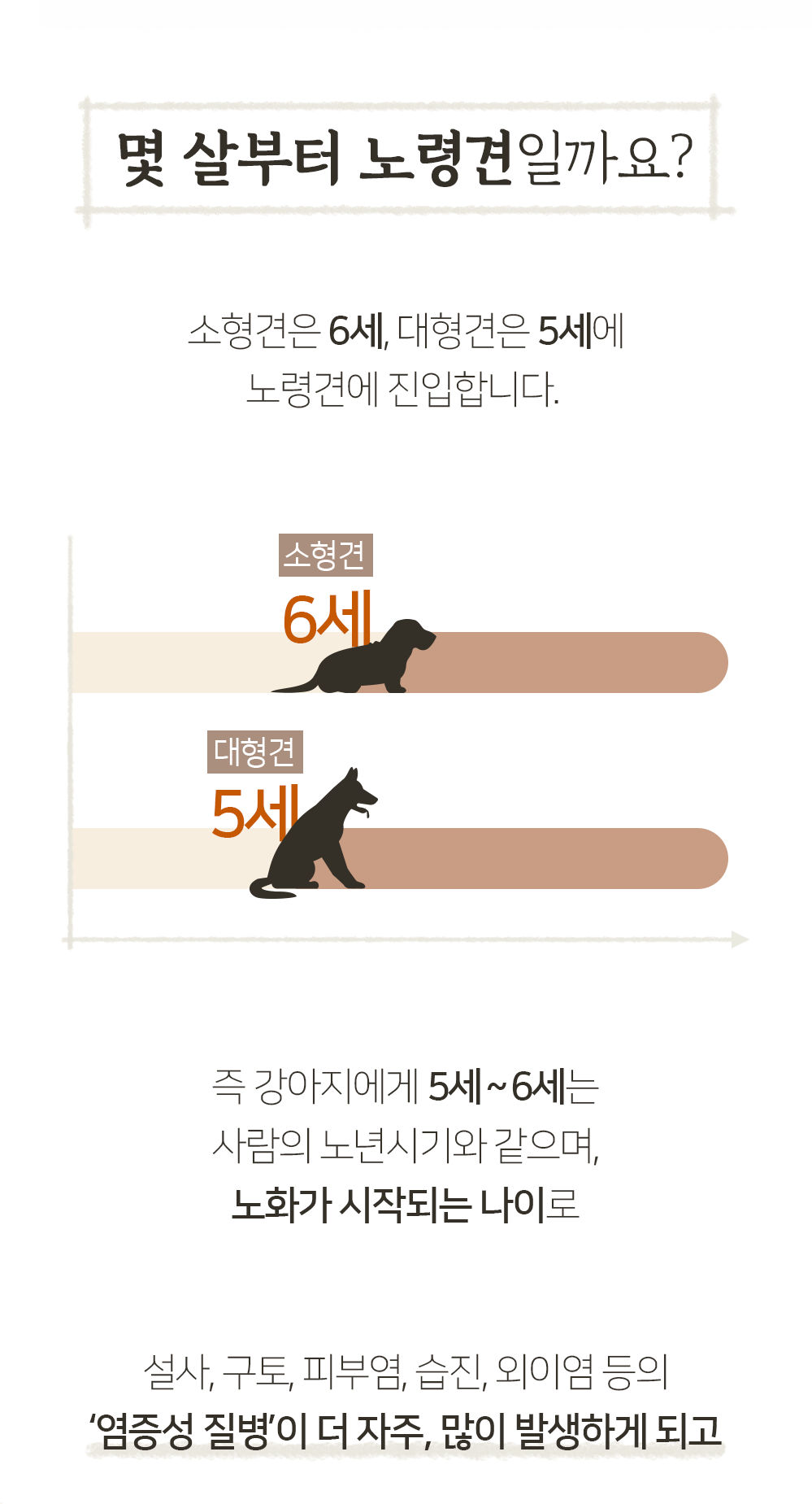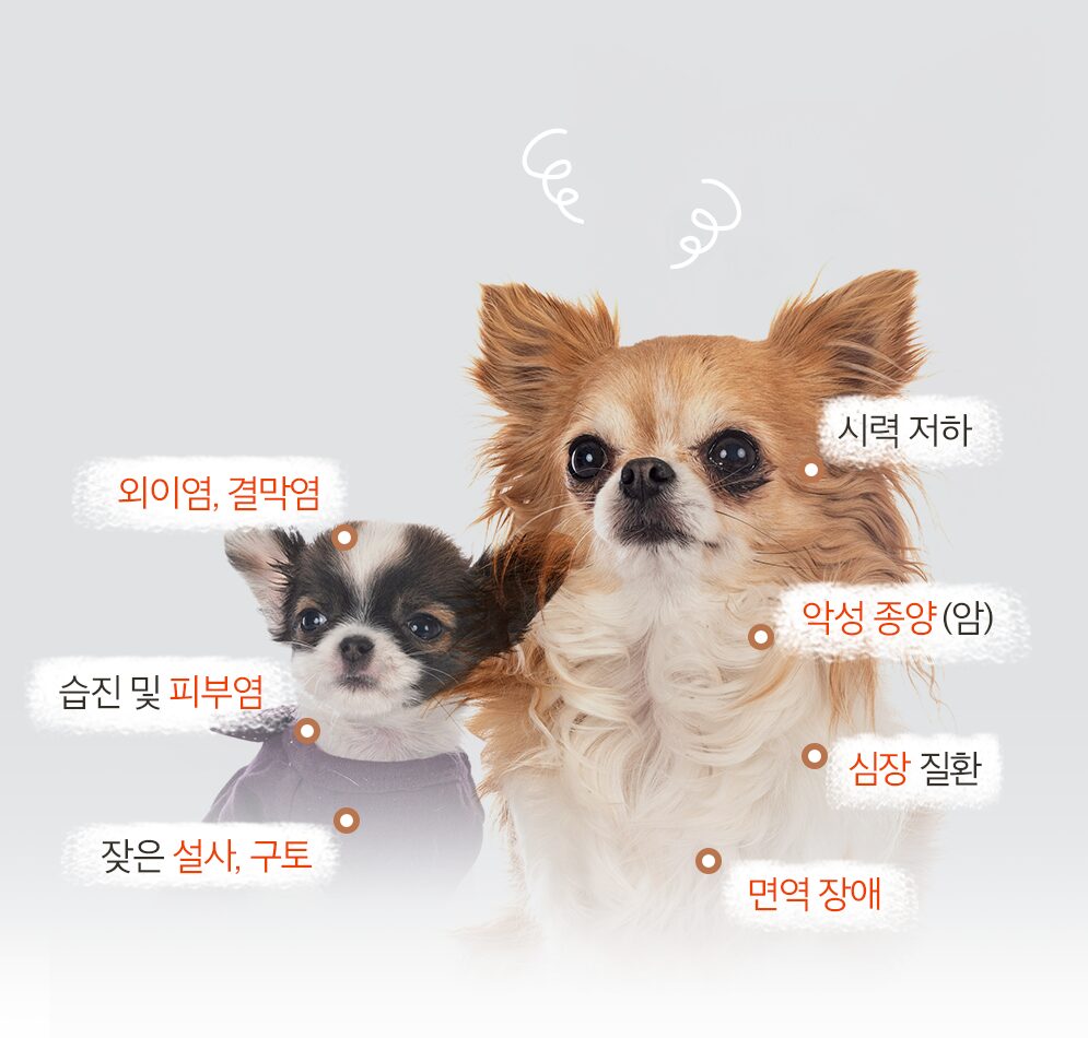In other words, 5 to 6 years old for dogs is the same as human old age, and as the age at which aging begins, ‘inflammatory diseases’ such as diarrhea, vomiting, dermatitis, eczema, and otitis externa occur more frequently and more frequently.
