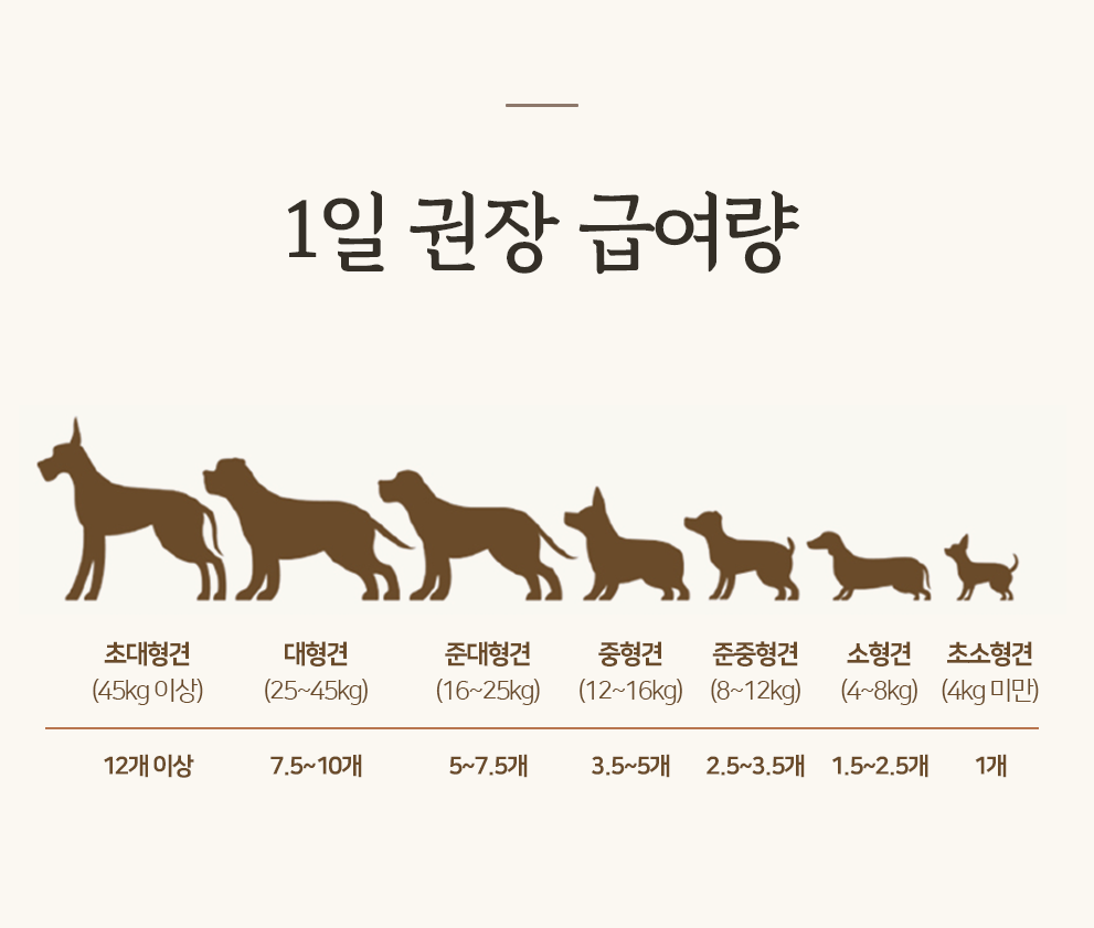 Small dogs (4~8kg): 1.5~2.5 pieces