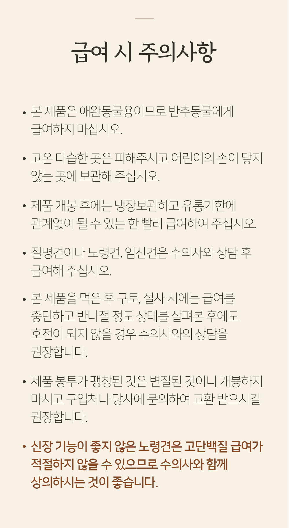 In case of vomiting or diarrhea after eating this product, stop feeding and if the condition does not improve after about half a day, it is recommended to consult a veterinarian.