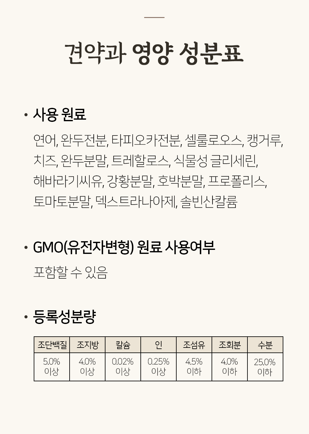 Gyeonyakwa is formulated with 25% or less high moisture content for high digestibility and absorption.