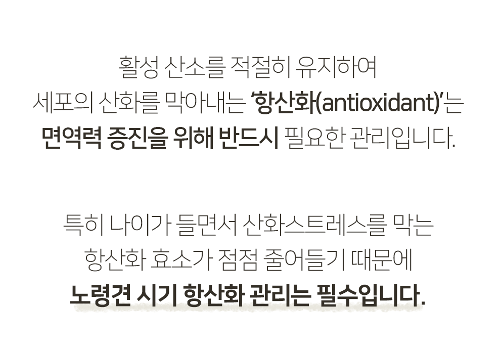 ‘Antioxidant’, which prevents oxidation of cells by properly maintaining active oxygen, is a necessary management for improving immunity.