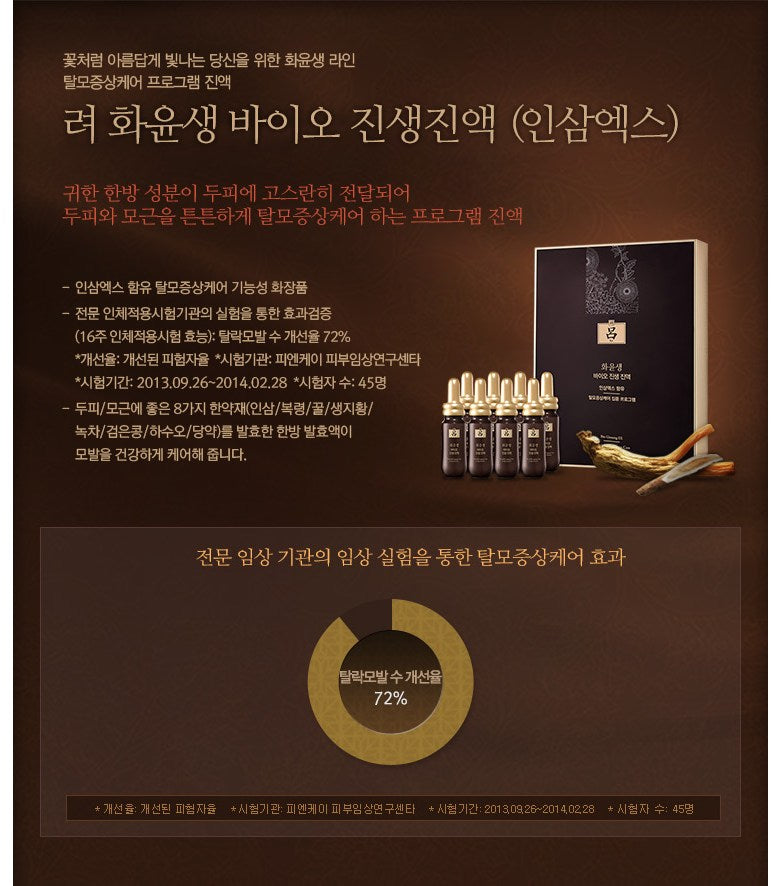 In addition, Hwayunsaeng Line Hair Loss Care Program has proven its effectiveness through clinical trials in specialized clinical institutions: