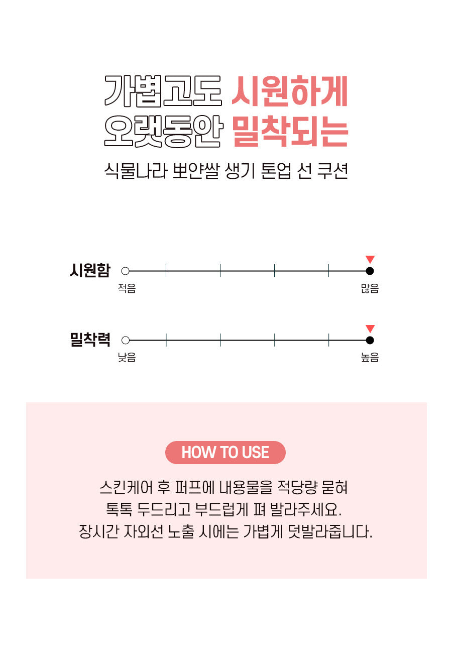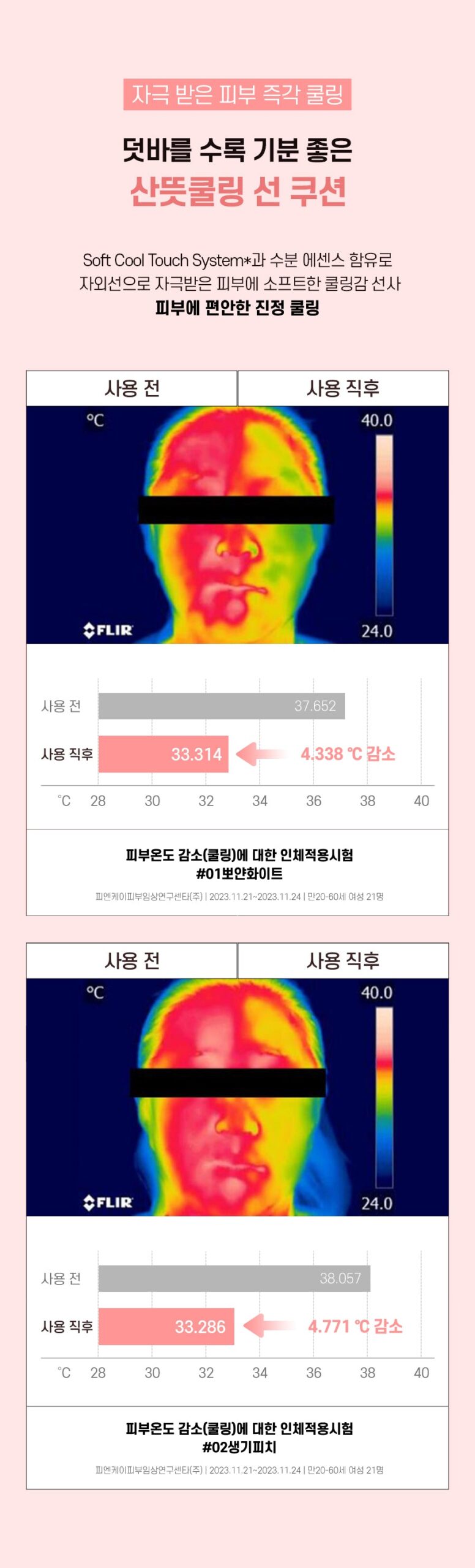 Enjoy the pleasant coolness on your skin with our state-of-the-art cooling technology. This unique sun cushion not only instantly soothes irritated skin but also provides a progressively enjoyable cooling sensation with each application. Featuring the Soft Cool Touch System alongside moisture essence, it delivers swift cooling and soothing effects, making it a delight for the skin.