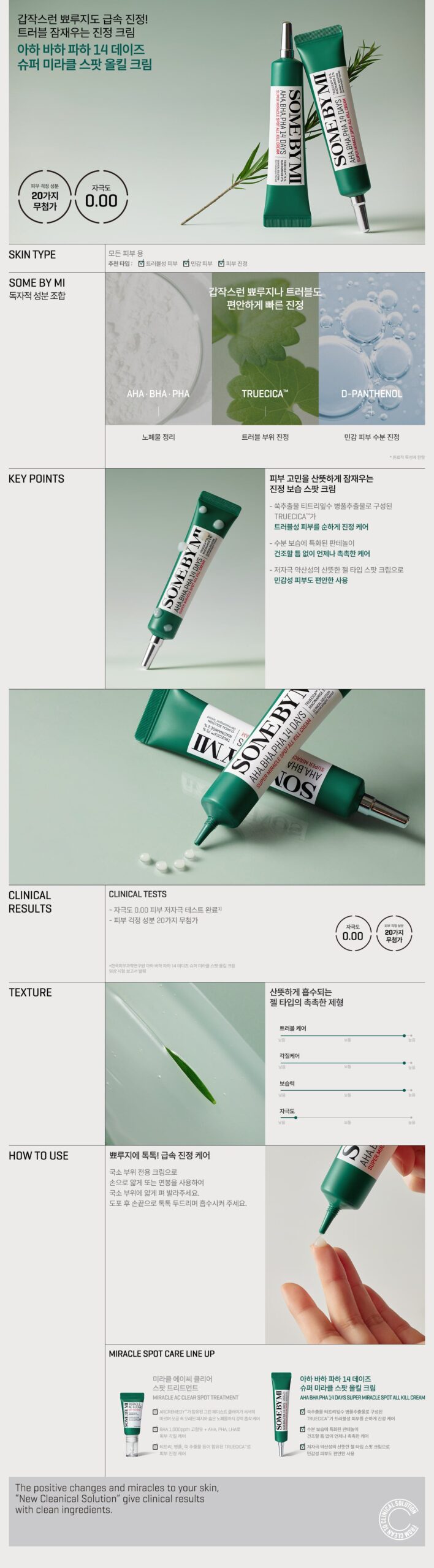 Infused with the power of TRUECICA™, along with specialized moisturizing ingredients like Panthenol, and designed with a gentle, gel formula, the AHA BHA PHA 14 Days Super Miracle Spot All Kill Cream is your go-to for maintaining moist, calm, and comfortable skin, even for those with sensitive skin types.