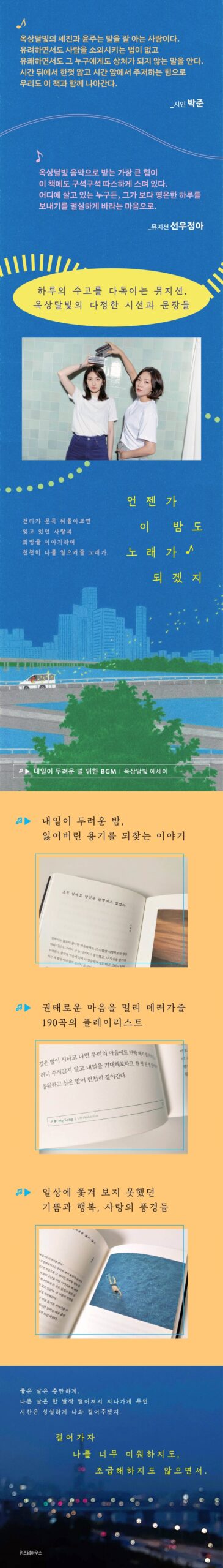 On nights when it’s hard to love myself, people look for Okdalbit’s music. The singer-songwriter duo, who sang the ups and downs of everyday life in plain language and presented numerous hit songs, an essay that resembles their songs to tell the story that the rooftop moonlight has not been able to convey through music. ’ was published. This book consists of a sincere confession filled with the emotions of two people who are similar to each other, photos taken by Kim Yun-joo, and recommended songs suitable for each episode. Give the gift of ‘listening’ time together.