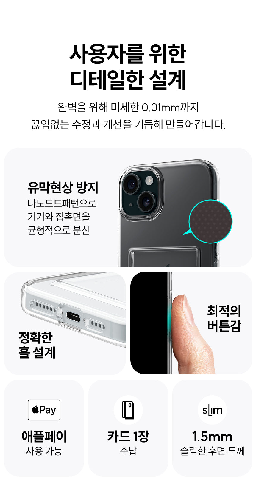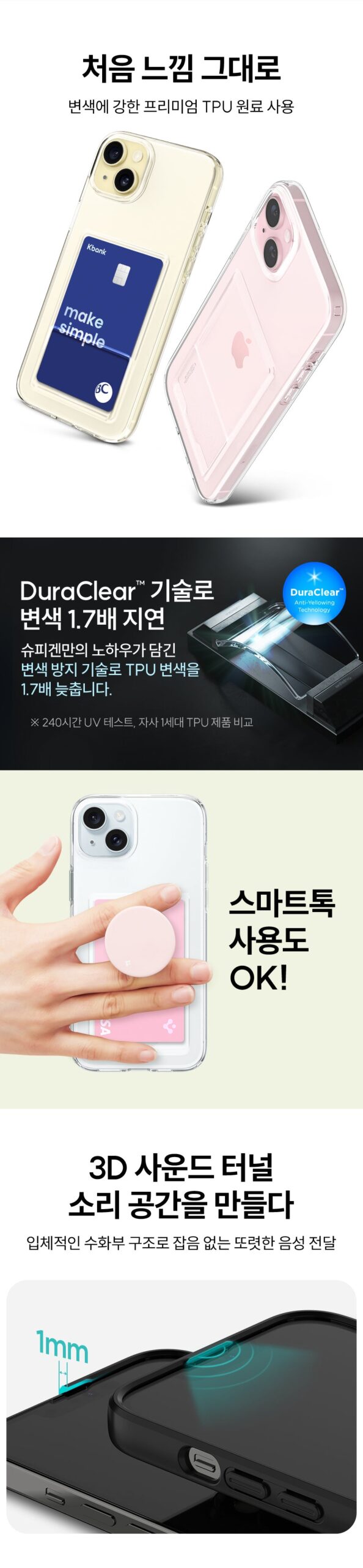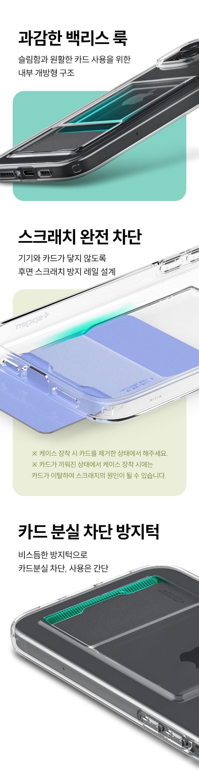 At first, I was doubtful about how a card case could improve my life. How many people genuinely need something so specific? However, after trying out the Spigen iPhone 15 Plus Card Case in crystal clear mode, it’s hard to turn back. The one-finger access feature feels nearly intuitive; slipping cards in and pulling them out became second nature surprisingly fast! What’s more captivating is its elegant backless design—minimalistic yet striking against any background—and it protects my cards while ensuring there’s no friction between them and the phone itself. That rail actually works wonders for scratch prevention! So yes, despite my initial skepticism of such products making a meaningful difference, this piece has quietly nestled into an indispensable part of daily routine.