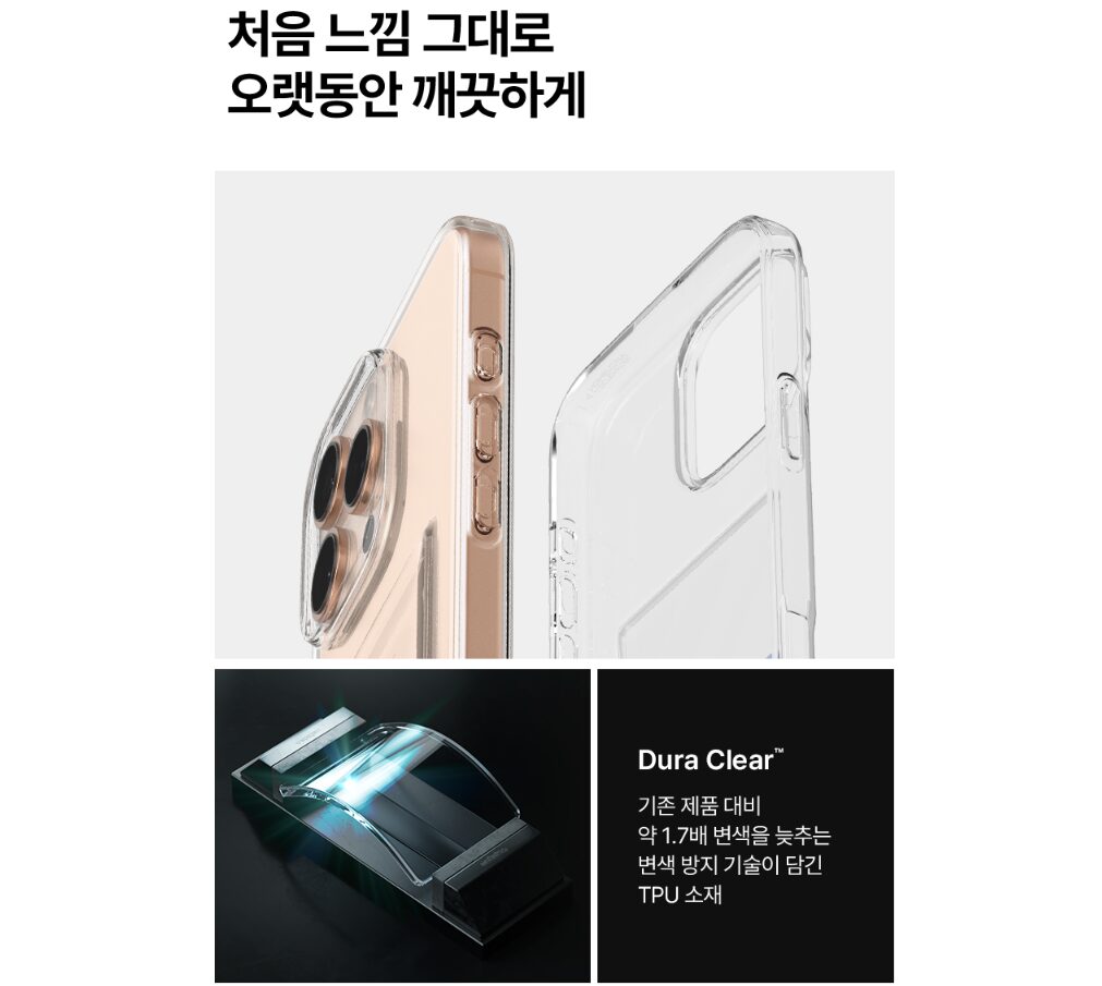 Made from Dura Clear TPU, this case offers exceptional clarity while resisting discoloration 1.7x longer than conventional materials.