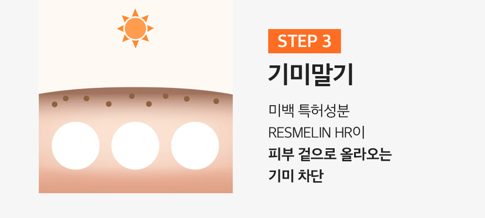 - Step 3: RESMELIN HR, a whitening patented ingredient, prevents the formation of dark spots.