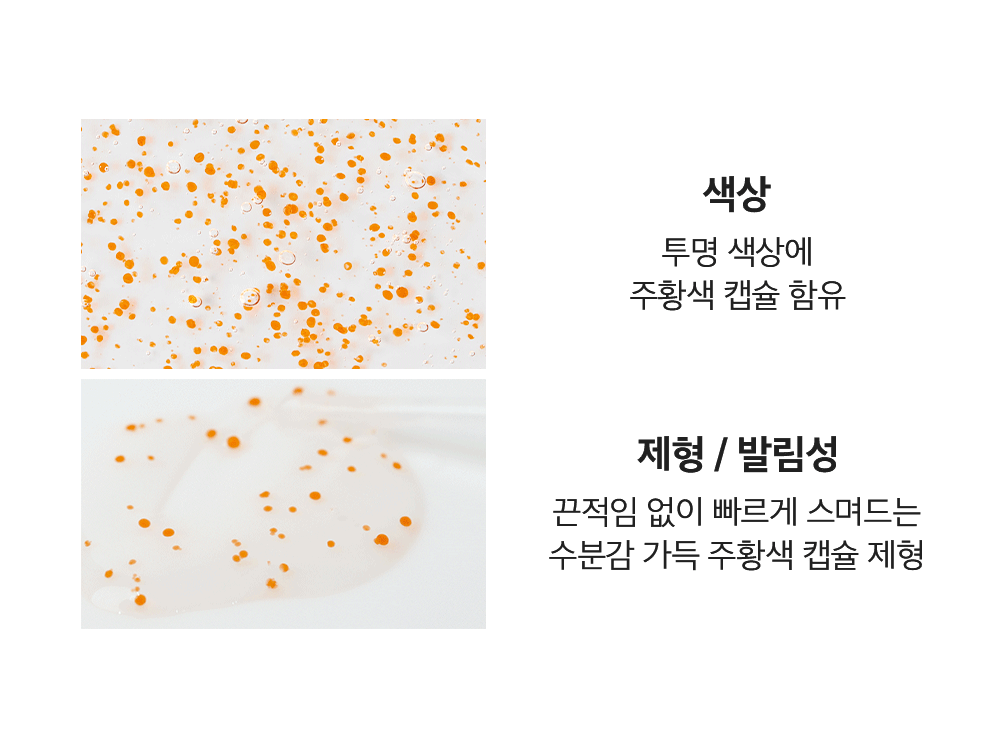 - Color and Texture: Transparent with orange capsules, offering a non-sticky, moisture-rich application.