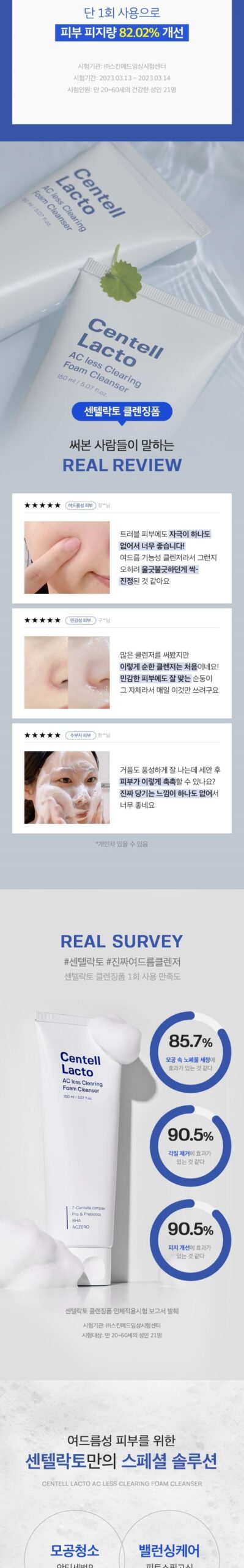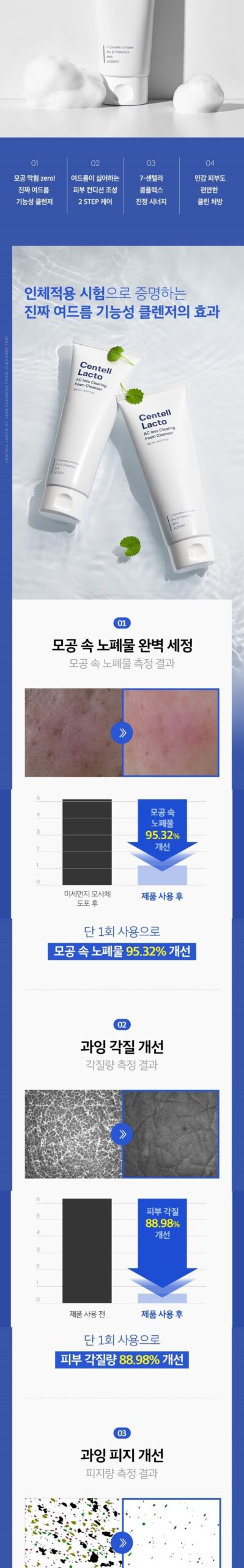 Achieve flawless skin with the Centellacto Acrys Clearing Foam Cleanser, specifically formulated for acne-prone skin. Our cleanser ensures zero pore clogging, effectively removing impurities from pores. Experience a remarkable 95.32% improvement in pore cleanliness after just one use, establishing itself as a real acne functional cleanser.