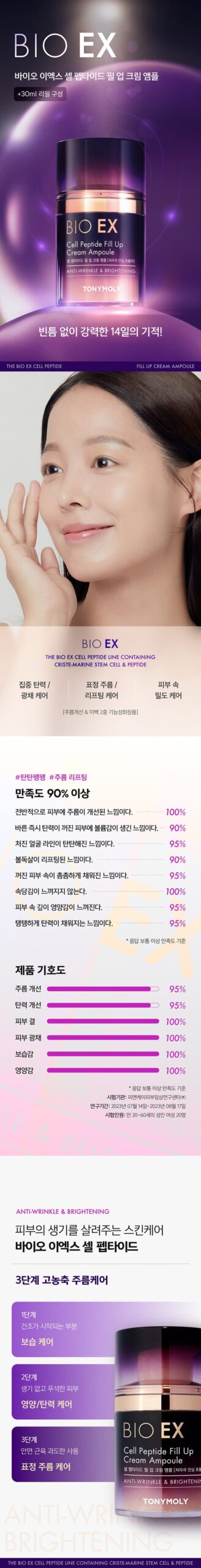 Advanced Wrinkle and Lifting Action Achieve over 90% satisfaction with our tightening and wrinkle-lifting formula. BIO EX is crafted to revitalize your skin, offering a 3-step, highly concentrated wrinkle care system: