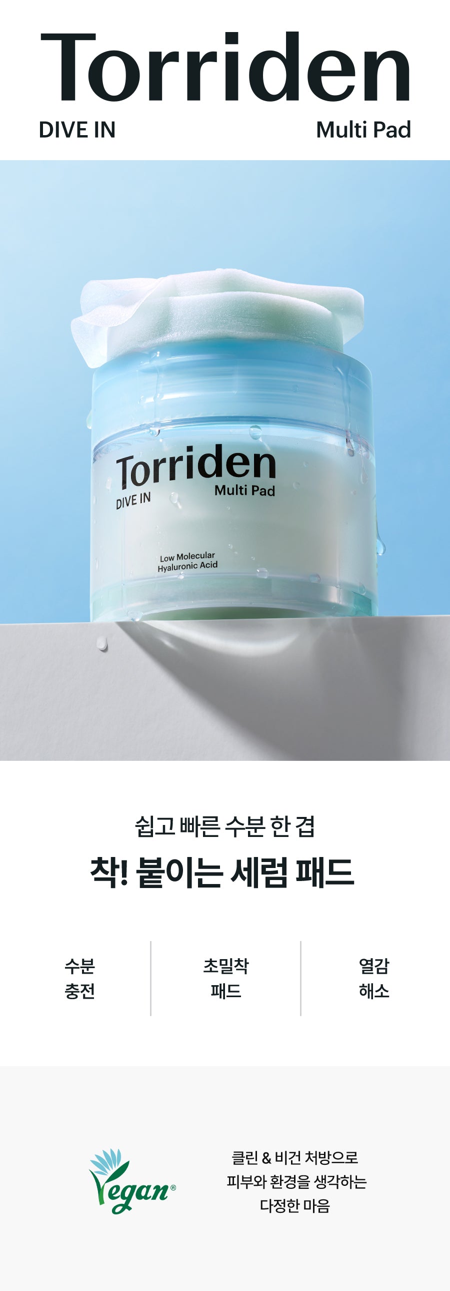 最近、Torridenの低分子ヒアルロン酸マルチパッドを使っています。乾燥しがちな私の肌にスーッと浸透していき、瞬時に潤います。一日の終わりには顔全体に広げることもあります。鎮静効果があり、お肌も柔らかく感じますよ。
