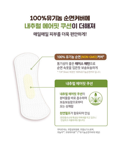 -Natural Air Fit Cushion immediately absorbs secretions to provide freshness from dryness.