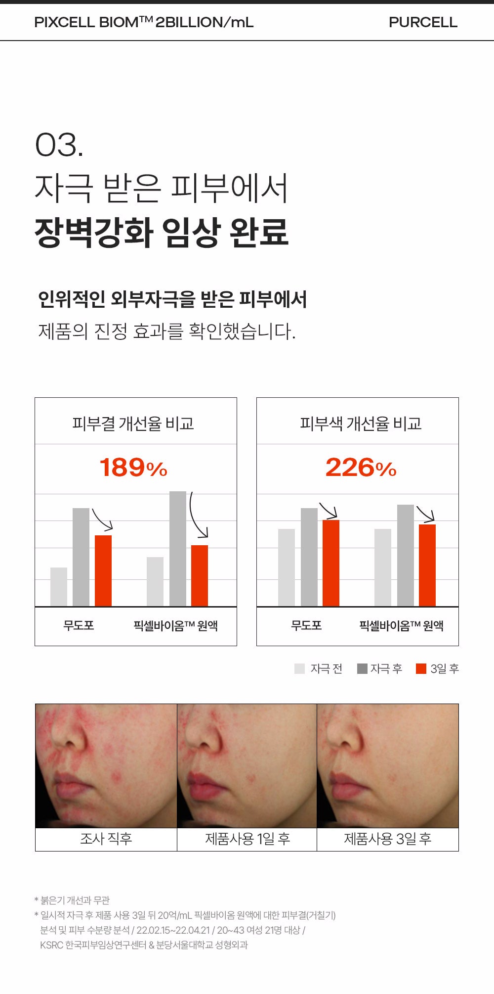 PURCELL Pixcell Biom is formulated with a dual skin barrier system that fortifies acne-prone skin. Clinically tested, it has shown significant improvements in skin barrier function on irritated skin. The results speak for themselves: