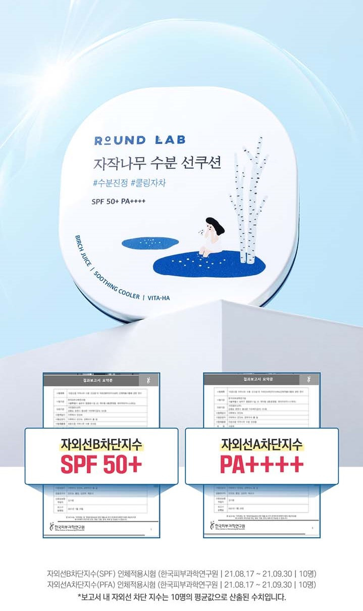 Trust in superior protection. The ROUND LAB Birch Juice Moisturizing Sun Cushion boasts a powerful SPF 50+ PA++++ rating, clinically confirmed to block stinging UV rays. This robust defense ensures your skin stays healthier and better protected against sun damage.
