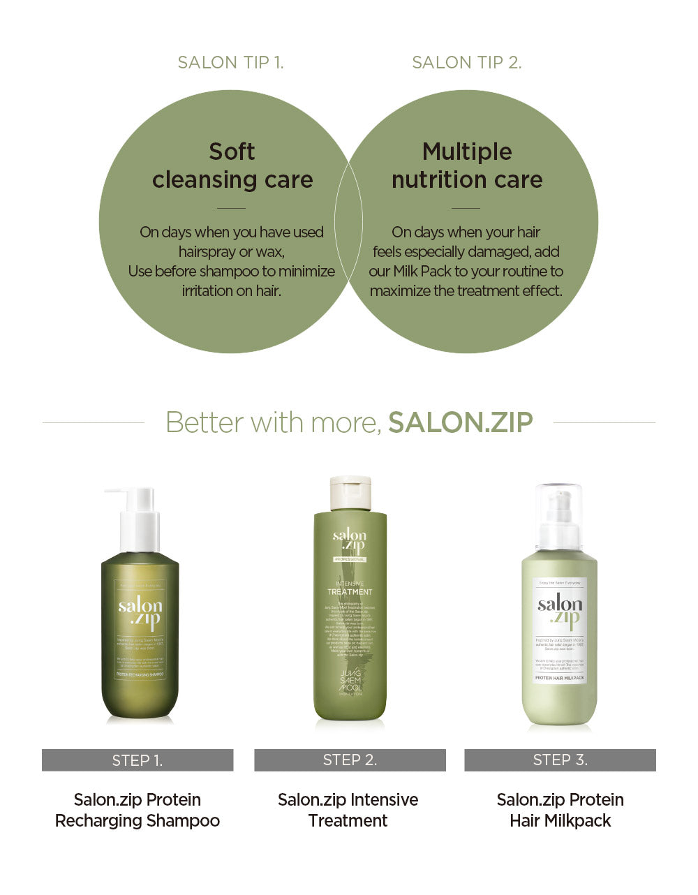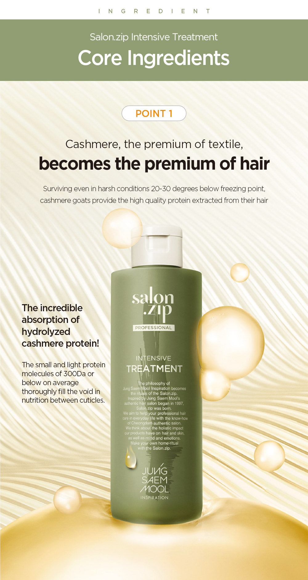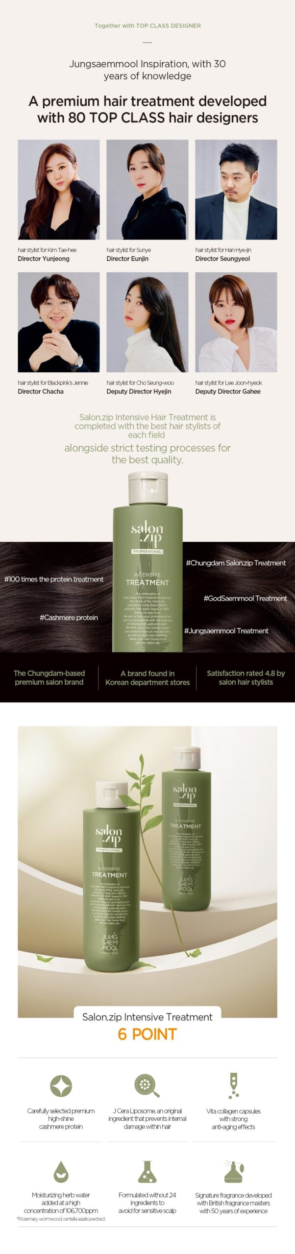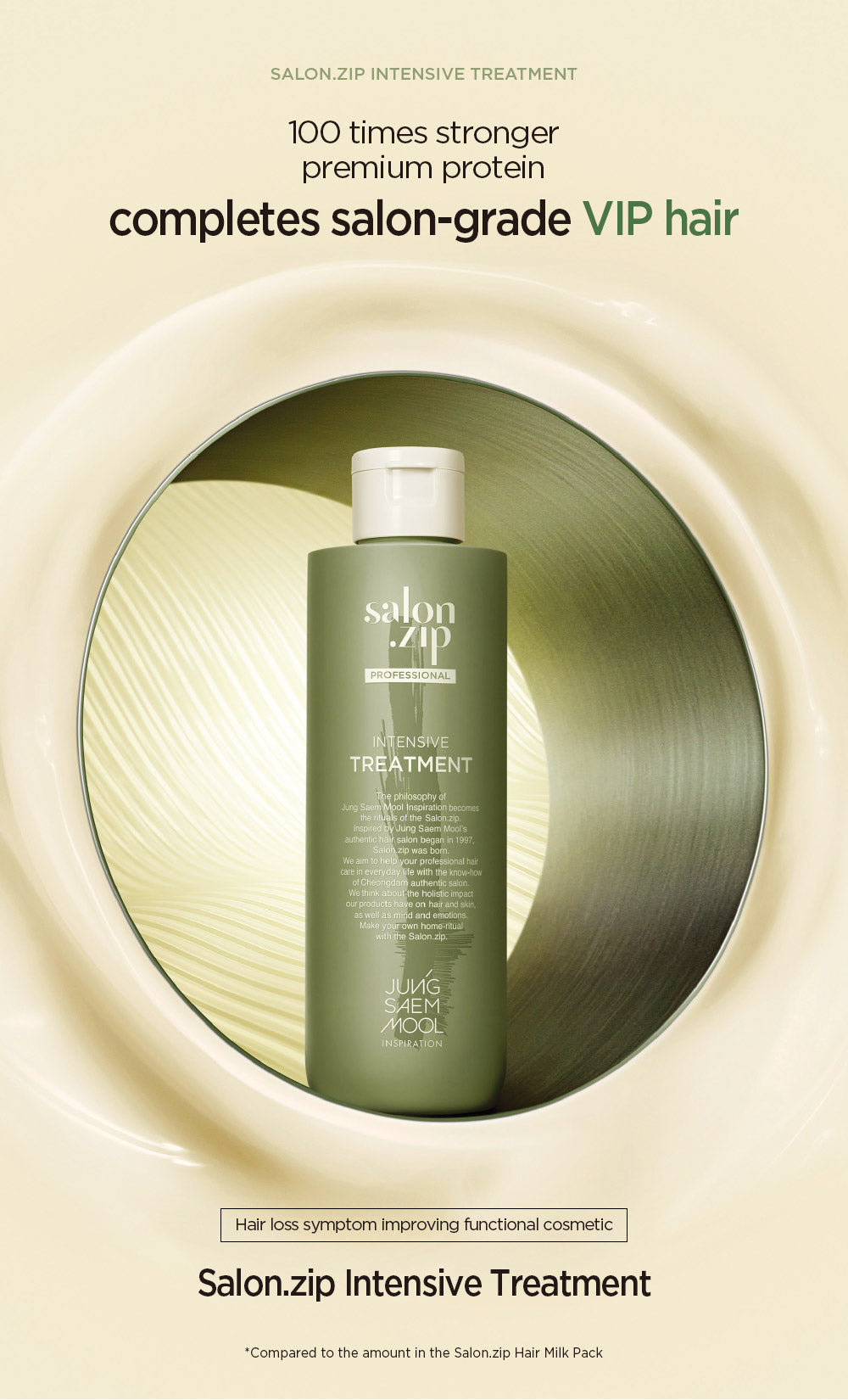 Discover the epitome of hair rejuvenation with Salon.zip Intensive Treatment, a masterpiece crafted in collaboration with the legendary Jungsaemmool Inspiration and 80 top-tier hair designers. This premium hair treatment is the result of 30 years of expertise, promising to elevate your hair to the top 1% with its potent premium proteins, now 100 times more powerful.