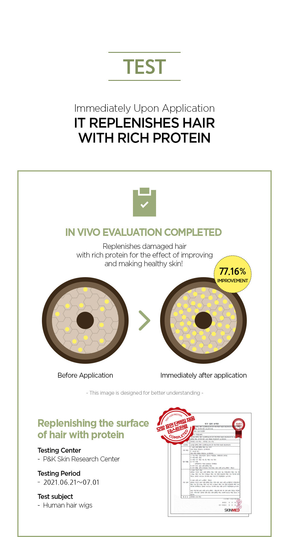 Immediate application results show a significant replenishment of hair with rich proteins. This claim is backed by thorough in vivo evaluations.