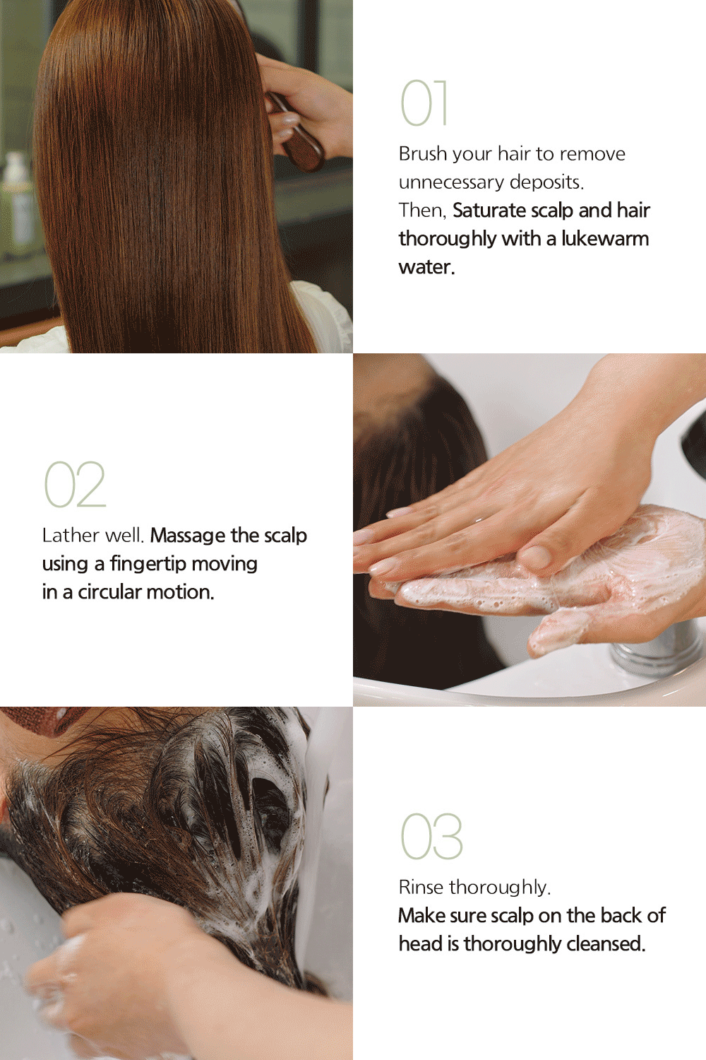 Our shampoo is formulated with a pH level of 5.5~6.0, the ideal range for maintaining healthy hair.