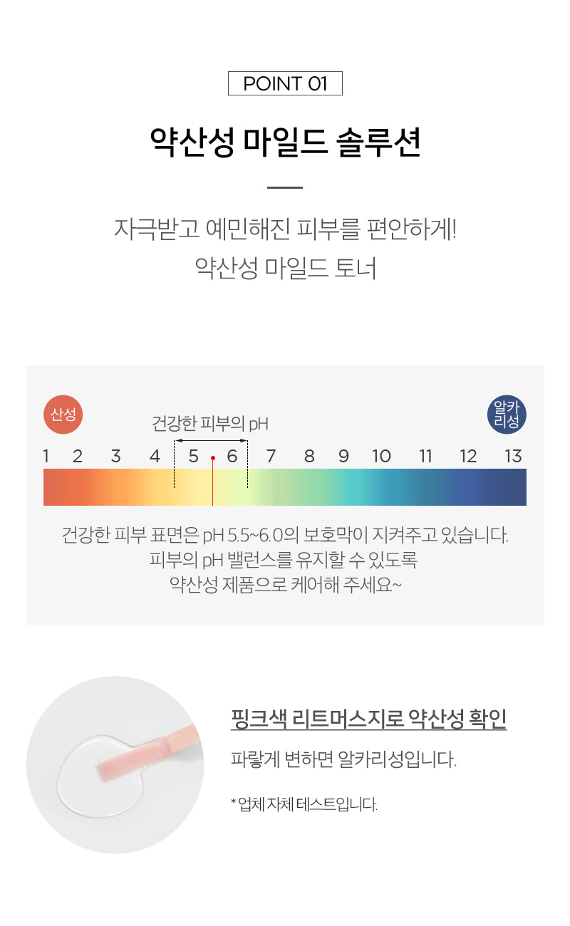 A healthy skin surface is protected by a protective film of pH 5.5 ~ 6.0. Use a weakly acidic product to maintain the skin’s pH balance.