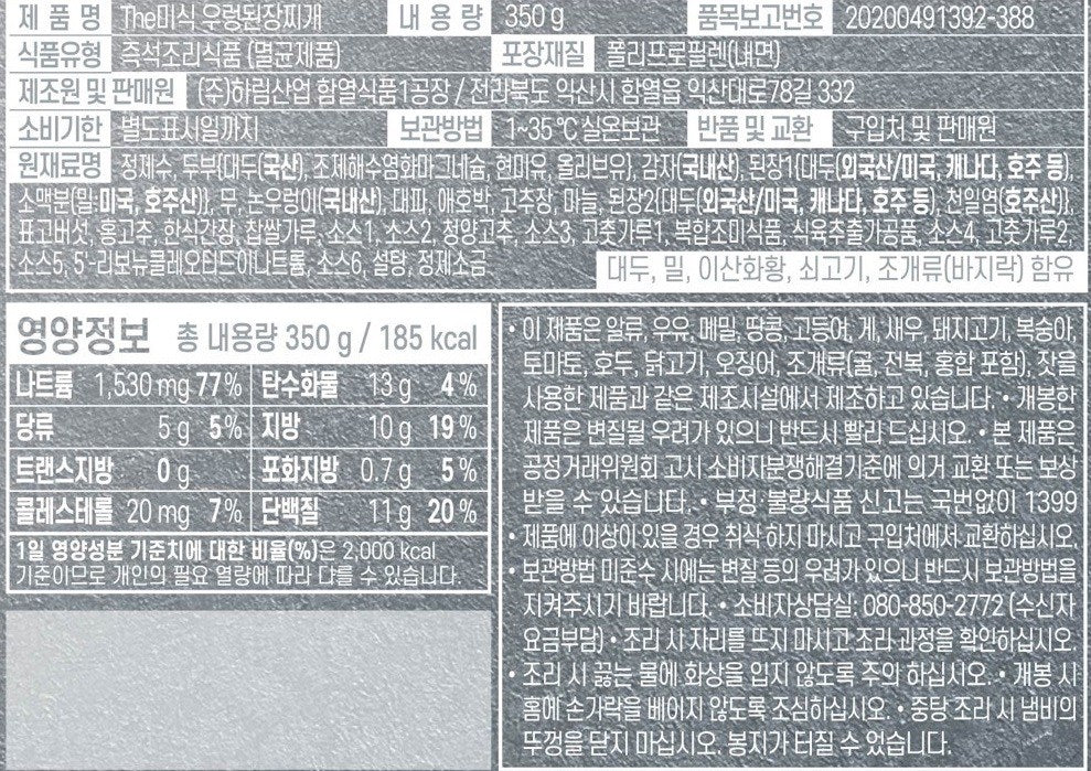 - Ingredients: A healthy mix of purified water, tofu, potatoes, various soybean pastes, radish, paddy snail, and other natural ingredients, ensuring a nutritious meal.