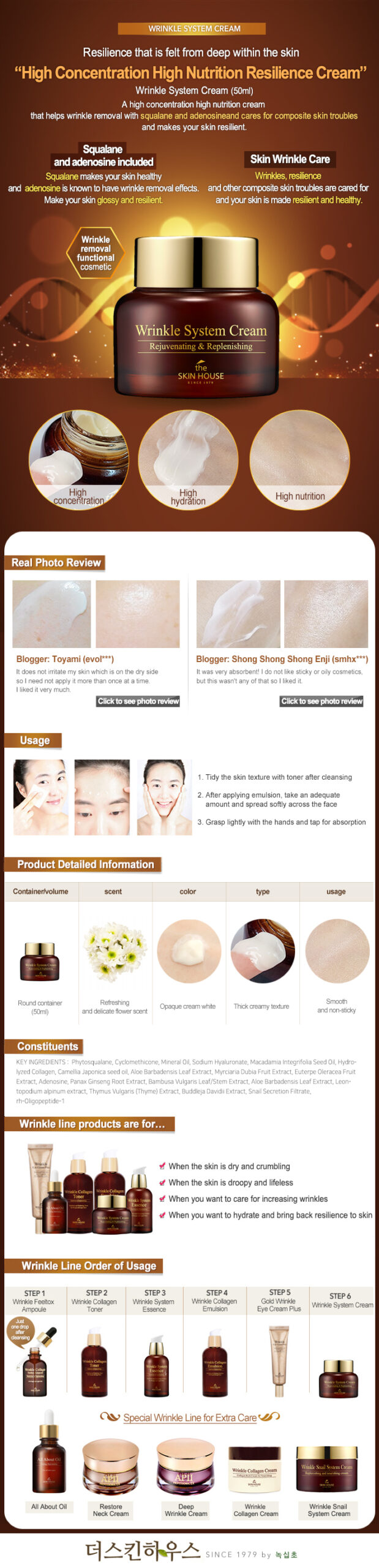 Reduce the appearance of wrinkles with THE SKIN HOUSE Wrinkle System Cream. This 50ml cream is specifically formulated to target fine lines and wrinkles, leaving your skin looking smoother and more youthful. See visible results with this expertly crafted anti-aging cream.