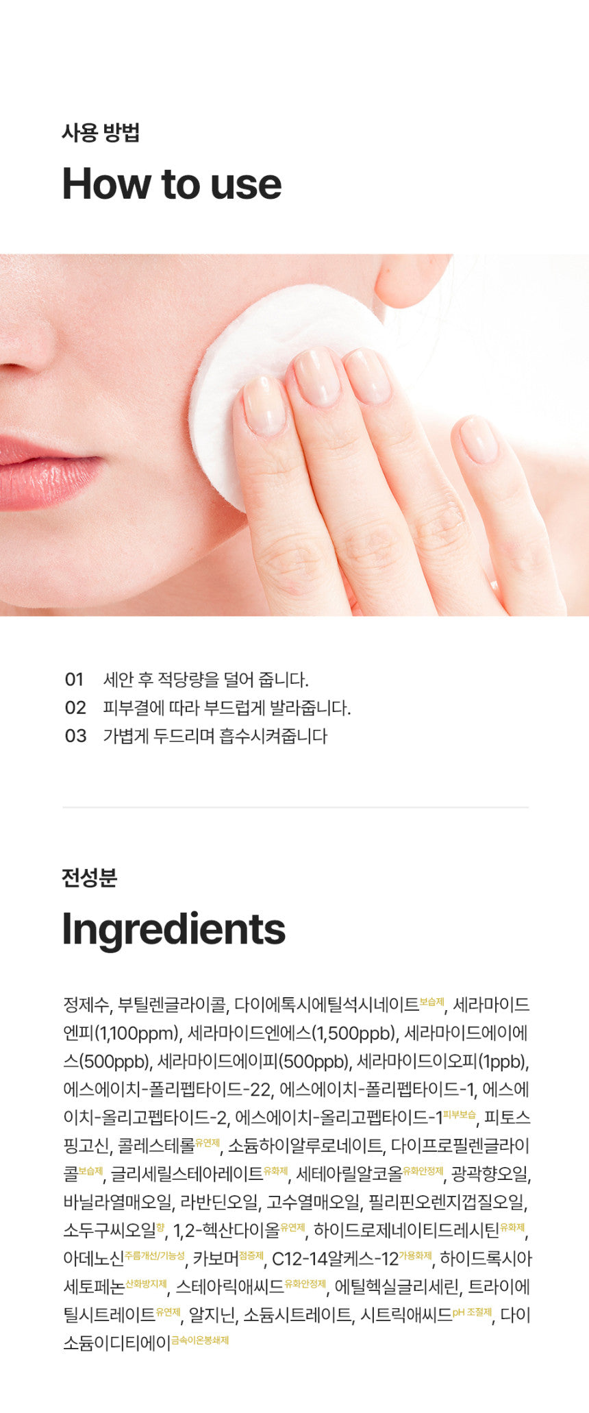 - Tone: Apply an appropriate amount of the anti-wrinkle toner, gently following the natural texture of your skin.