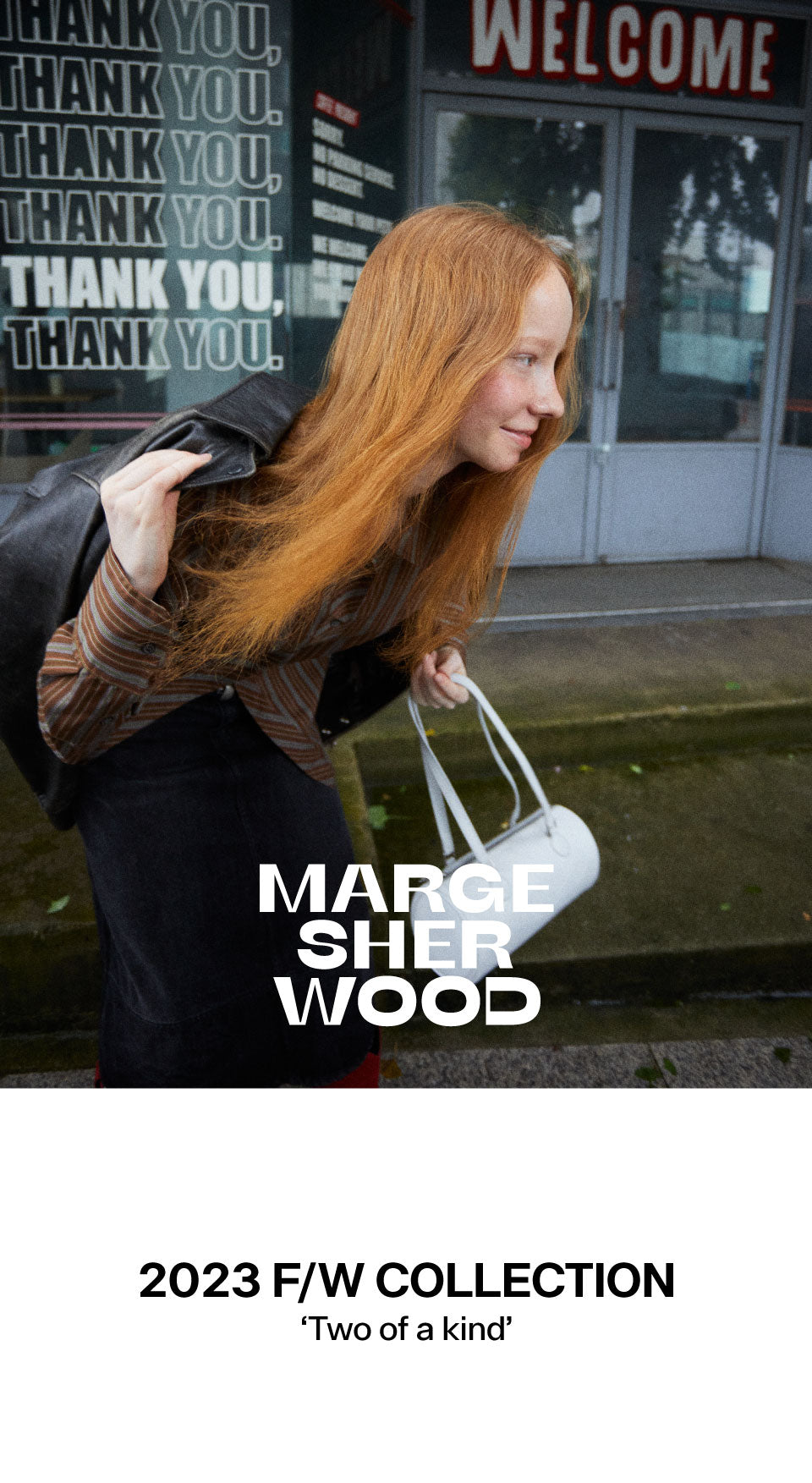 - Branded Lining: The interior is lined with a fabric featuring the Marge Sherwood logo.